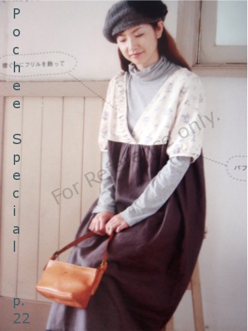 The width of the linen fabric is not as wide as in the pattern, to make up for the shortened length. The pattern can be found in this book ( ISBN978-4-529-04629-9):