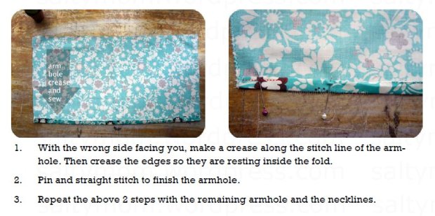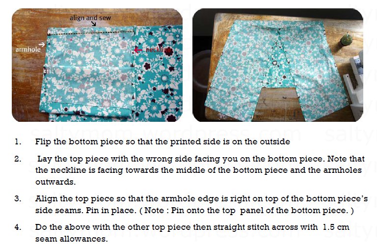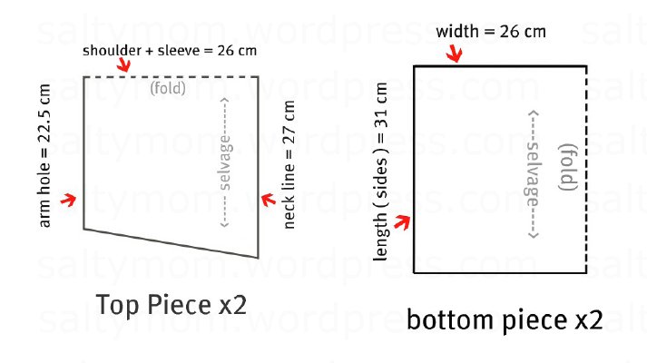Note : If your top piece is wider than the bottom piece, you can overlap the neckline, and/or create an “extended” sleeve.