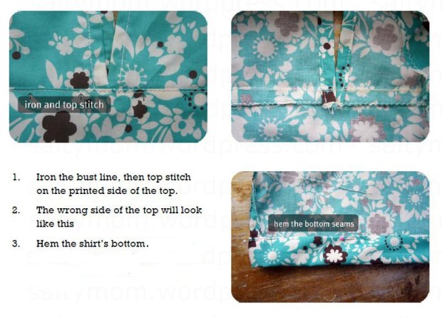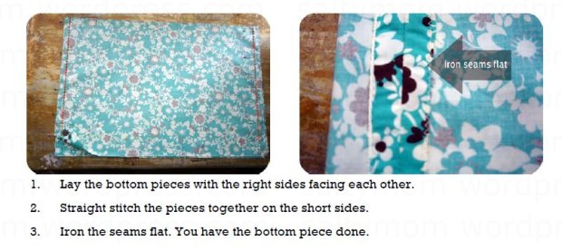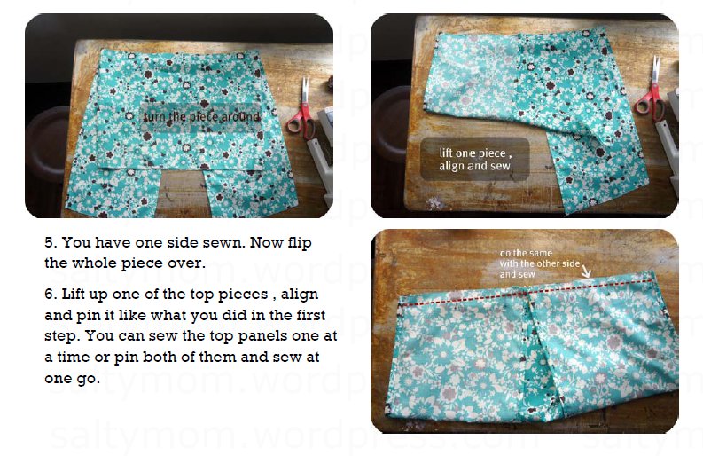 I use the same fabric ( about 1.2 meter ) for the whole piece in the following tutorial. When you cut the fabric pieces, remember to add 1.5 cm seam allowances all around, except on the bottom piece’s hem which is 5 cm. Also, remember to zigzag stitch all around the edges.