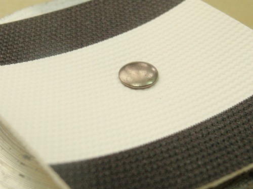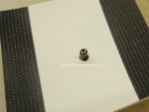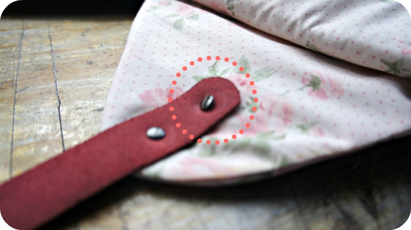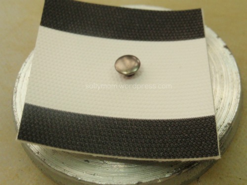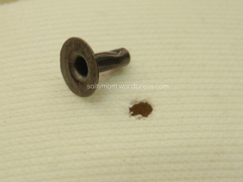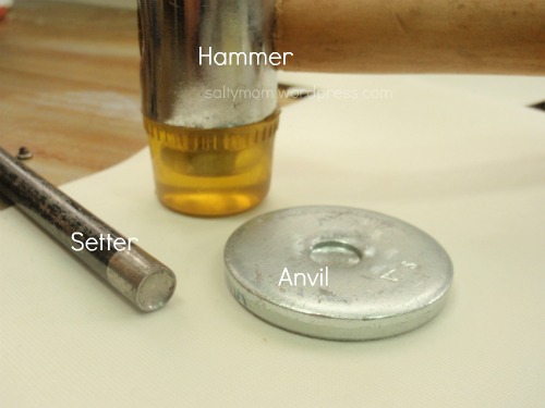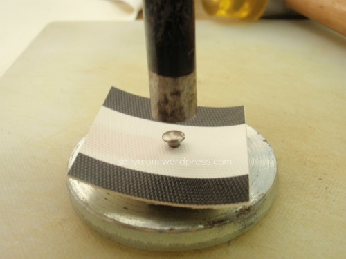 Now that you know your tools, on to setting the rivet. Punch a hole and push the shaft piece up the “underside ” of the fabric…