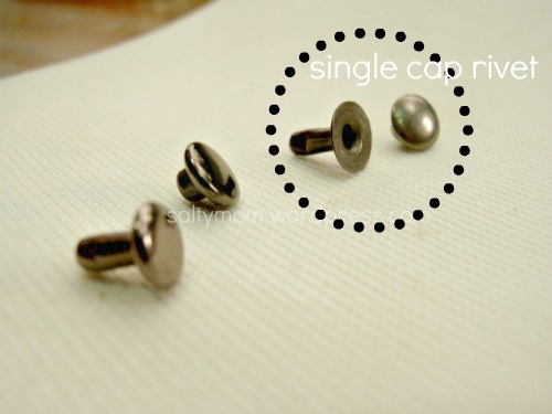 There are the single cap rivets and the double cap rivets. If the rivets are going to be seen on both sides, use the double cap ones. Also consider the thickness of the bag. It should match the shaft’s length so that after it is set, it stays snugly in place. If your bag is on the thin side, you can add little squares of felt/interfacing in between to give the rivet some meat to hold on to.
