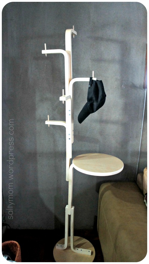 Recently, I made a coat hanger from two Ikea stools ( Frosta ) following the plans posted by the designer, Andreas Bhend. He was so generous to share not just one but three designs that can be made with the Frosta stool. There’s a wall shelf that reminds me of a subway map, a coffee table with a uniquely shaped table top, and a coat hanger as shown below :