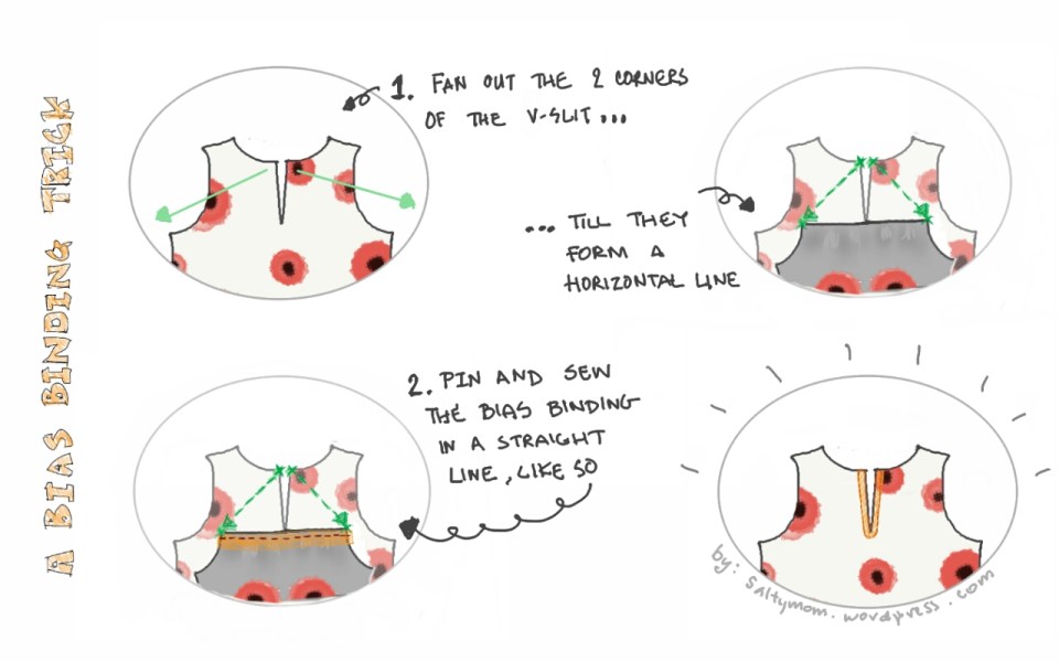 How to sew bias binding to slit v-neckline
