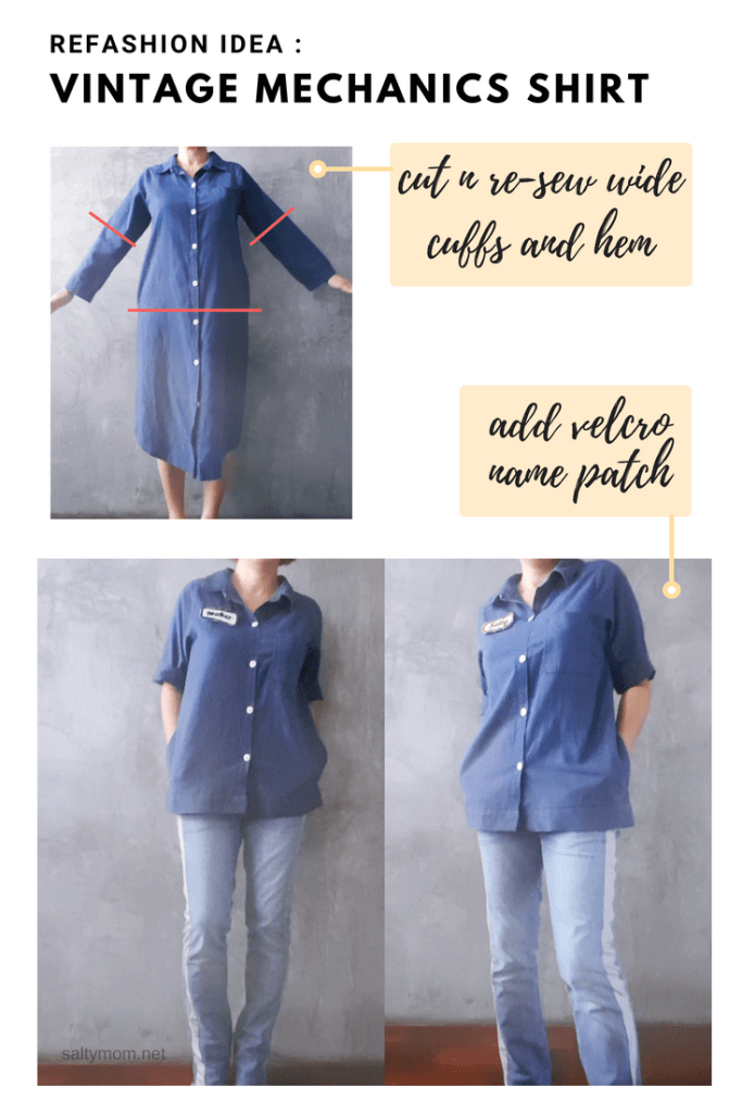 refashion old shirt to vintage style mechanics shirt with removable name patch