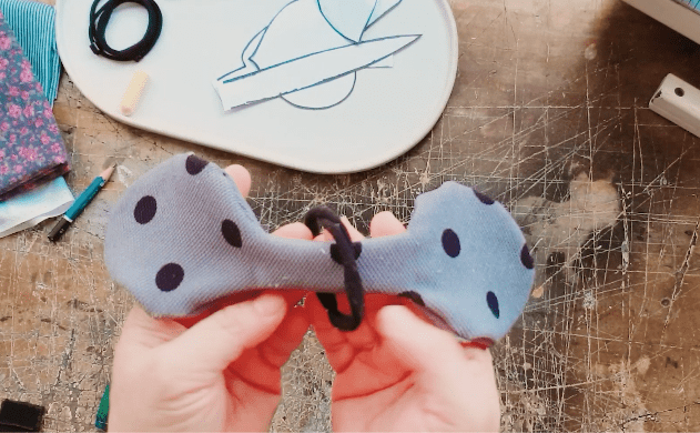 This method of sewing is called the “burrito method” where you sew the short ends together first, then wrap it up like a burrito and go on to sew the sides. I left the opening on the sides so I can adjust the elastic band. If you make it shorter than the regular elastics, you can wear it without having to do a double twist… meaning you tie your hair up , then slip the scrunchies on so that it retains its shape 🙂 Overthinker here !