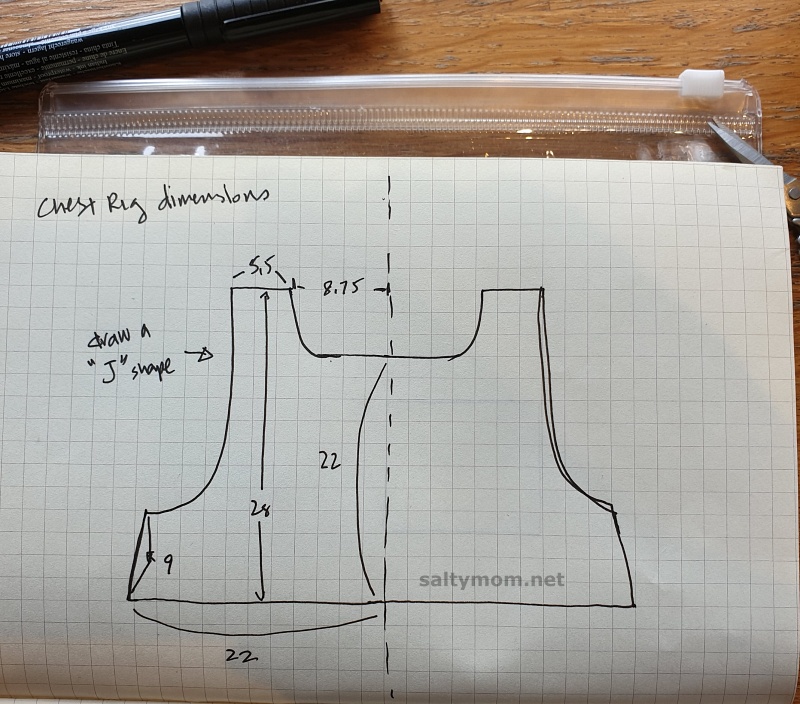 The bag can be wore in an “overall” style or tighten to be like a tank top. This is my first draft, so here is a rough pattern guide. I drafted it out on my dress form and measure it up, just for you ( XD ) :
