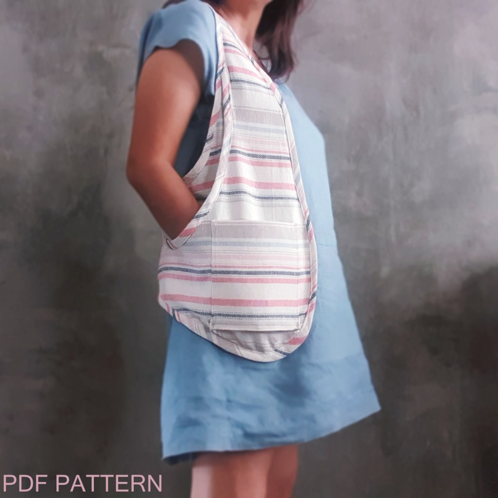 Materials for this project will be any light weight fabric that doesn’t have a visible right or wrong side. You will need about 2 meters ( 2.5 yds ) and this includes the fabric needed for the bias binding and the front pockets. If you want the pockets to have a stiff shape, you will need stiff iron-on ( fusible ) interfacing to add some structure to it.