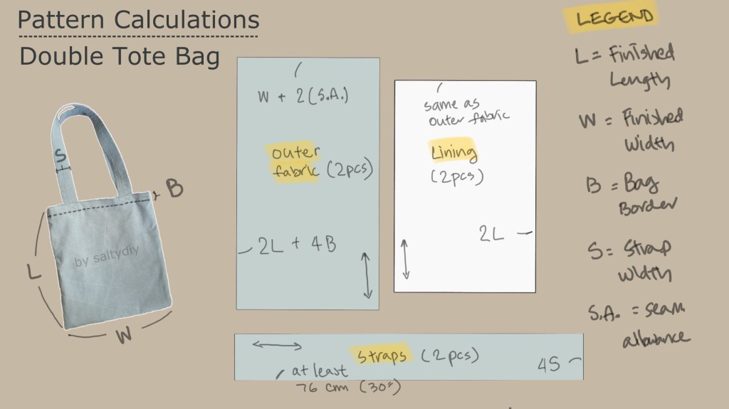 This bag looks just like a regular tote bag, but it is actually 2 totes sewn together on one side and sharing the handles. I’ve checked on Youtube if there is a tutorial on it, found 2, but they weren’t lined, so I’m adding how to line it to the knowledge pool 🙂 I’m going to write more run-on sentences cuz it’s late and I’m just typing whatever is in my brain. Here is how it looks like :
