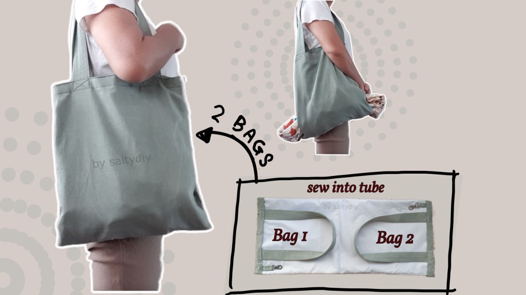 It is sewn like a tube, so when you fold the bag’s opening together, it forms 2 bags and also an extra slot “hole” at the bottom. The tutorial is here :